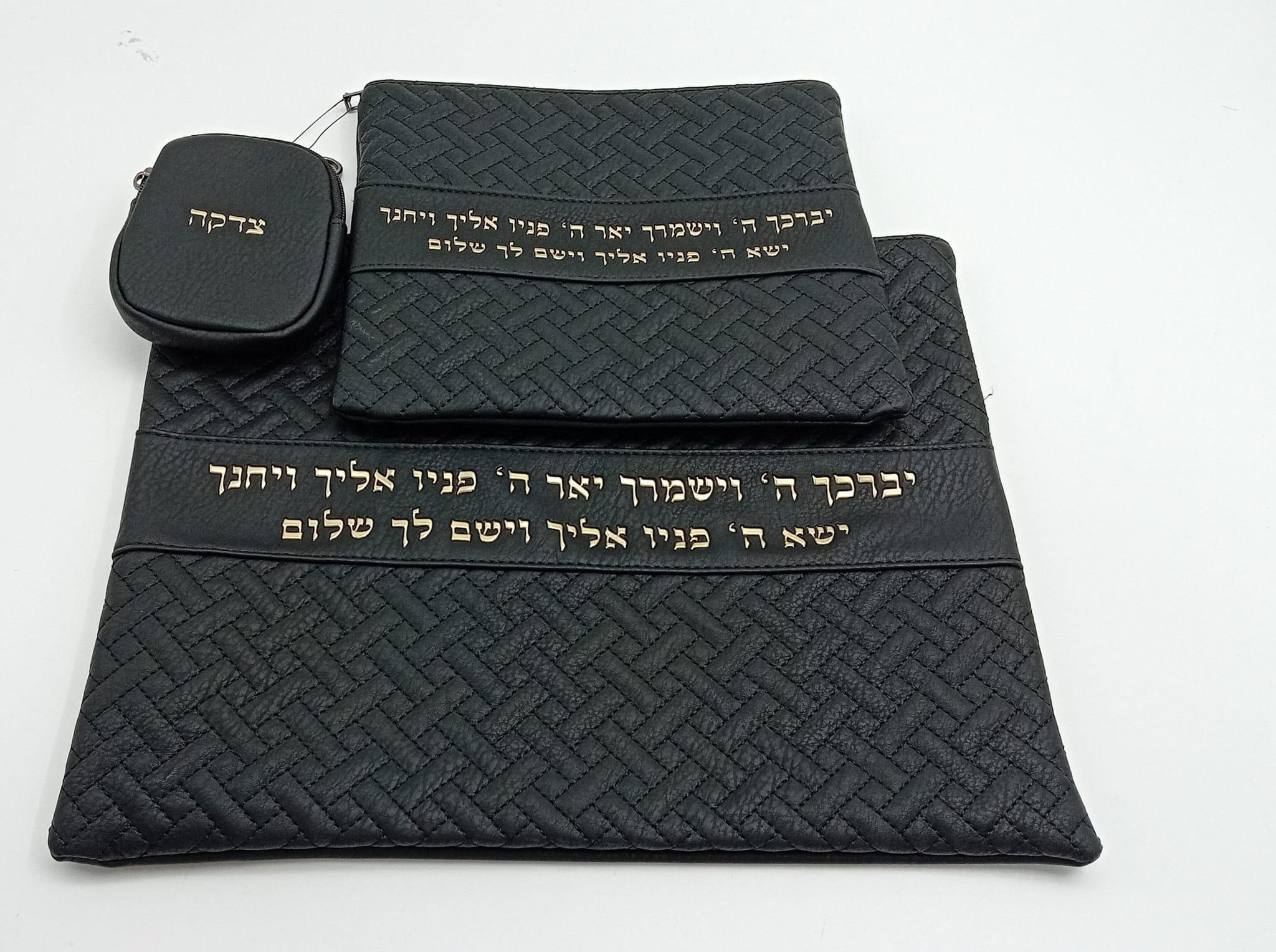 תיק מפואר לטלית ותפילין שחור כיתוב זהב עם קופת צדקה